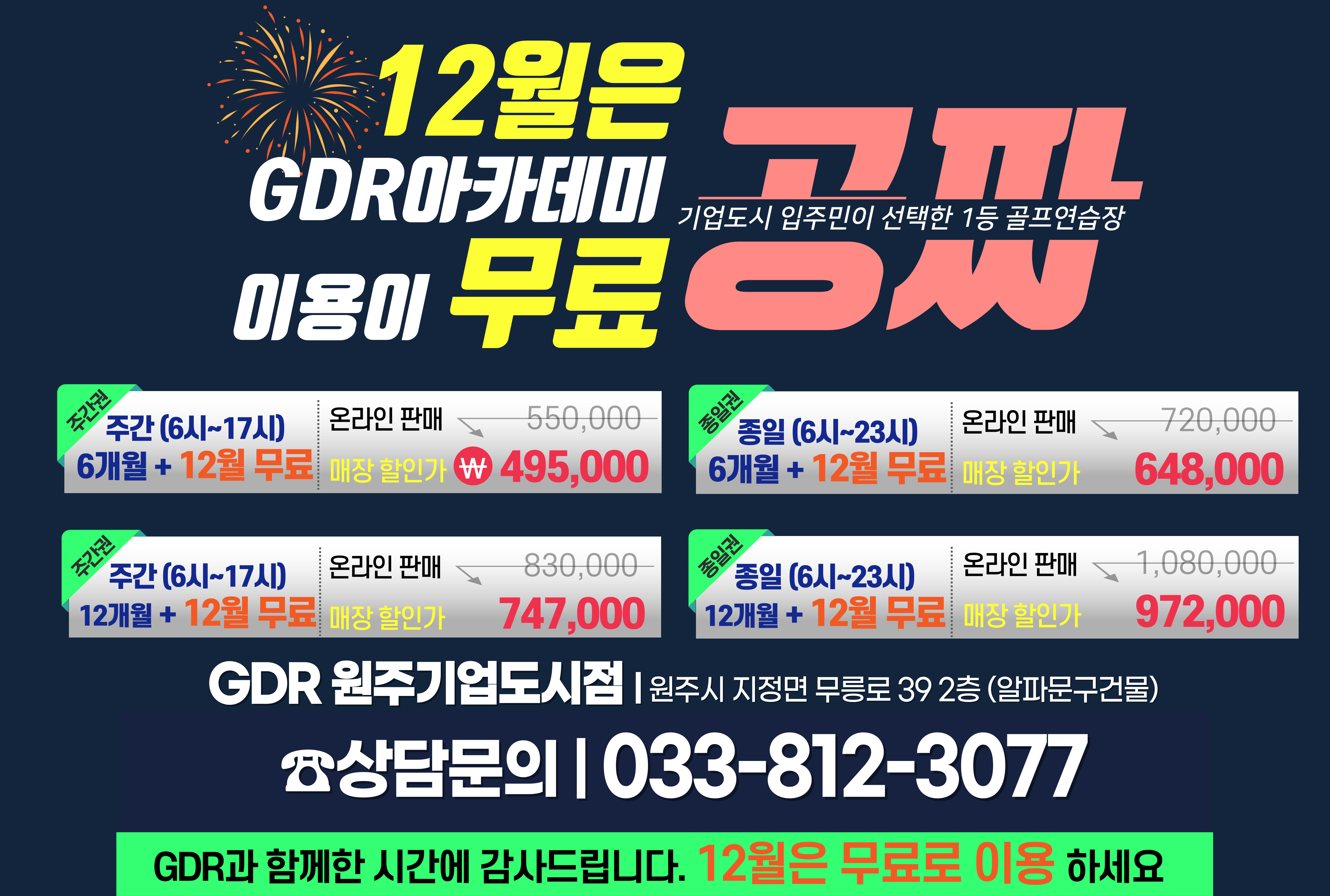 🔸 12월달 한달은 공짜 🔸 무료로 GDR 다니세요 🔸